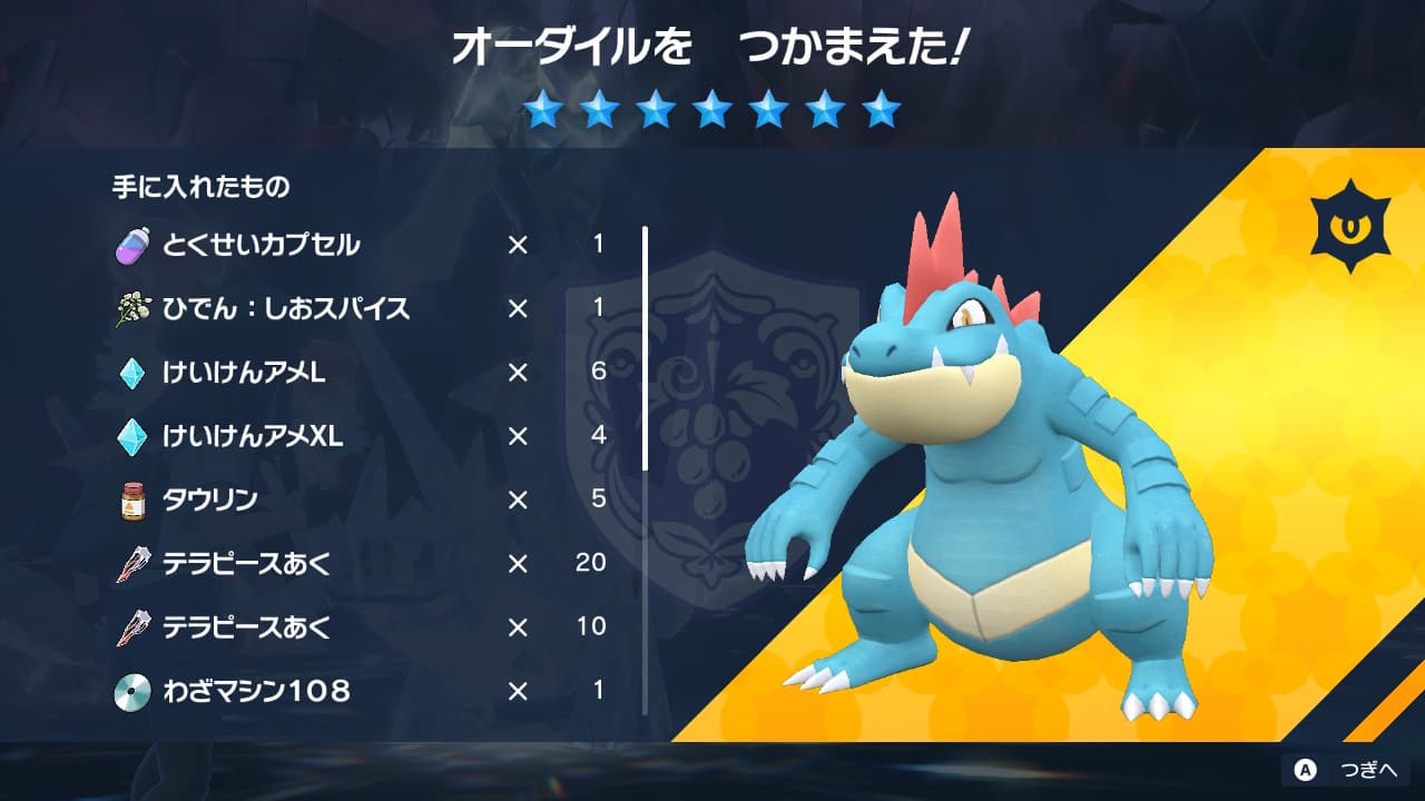 頑張ったんだけどさー、オーダイル初手で剣舞されたり速さが足りない!!状態で何度も追い出されまして。やばかった。