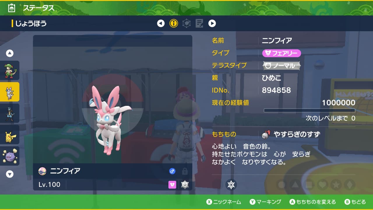 このニンフィアちゃんはレイド用に育てようと思います。努力値も振っておいたし、ミントも与えました。