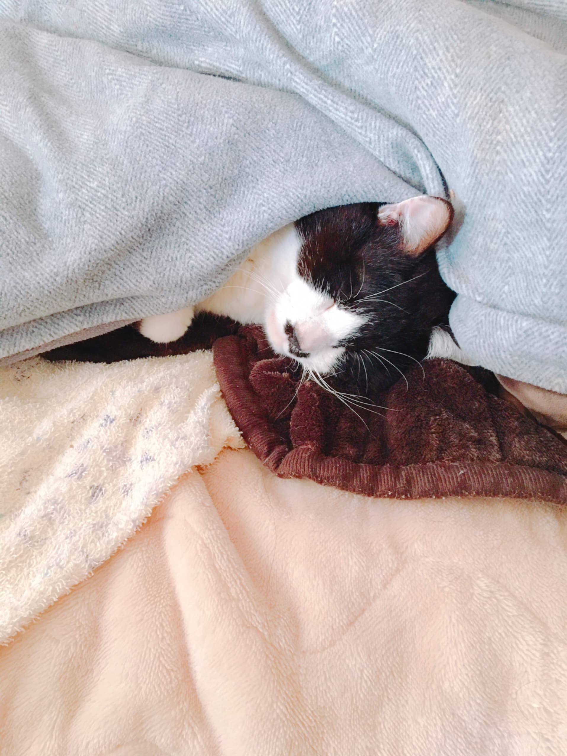 昼間の猫。今日は一緒にお寝坊しちゃいました。