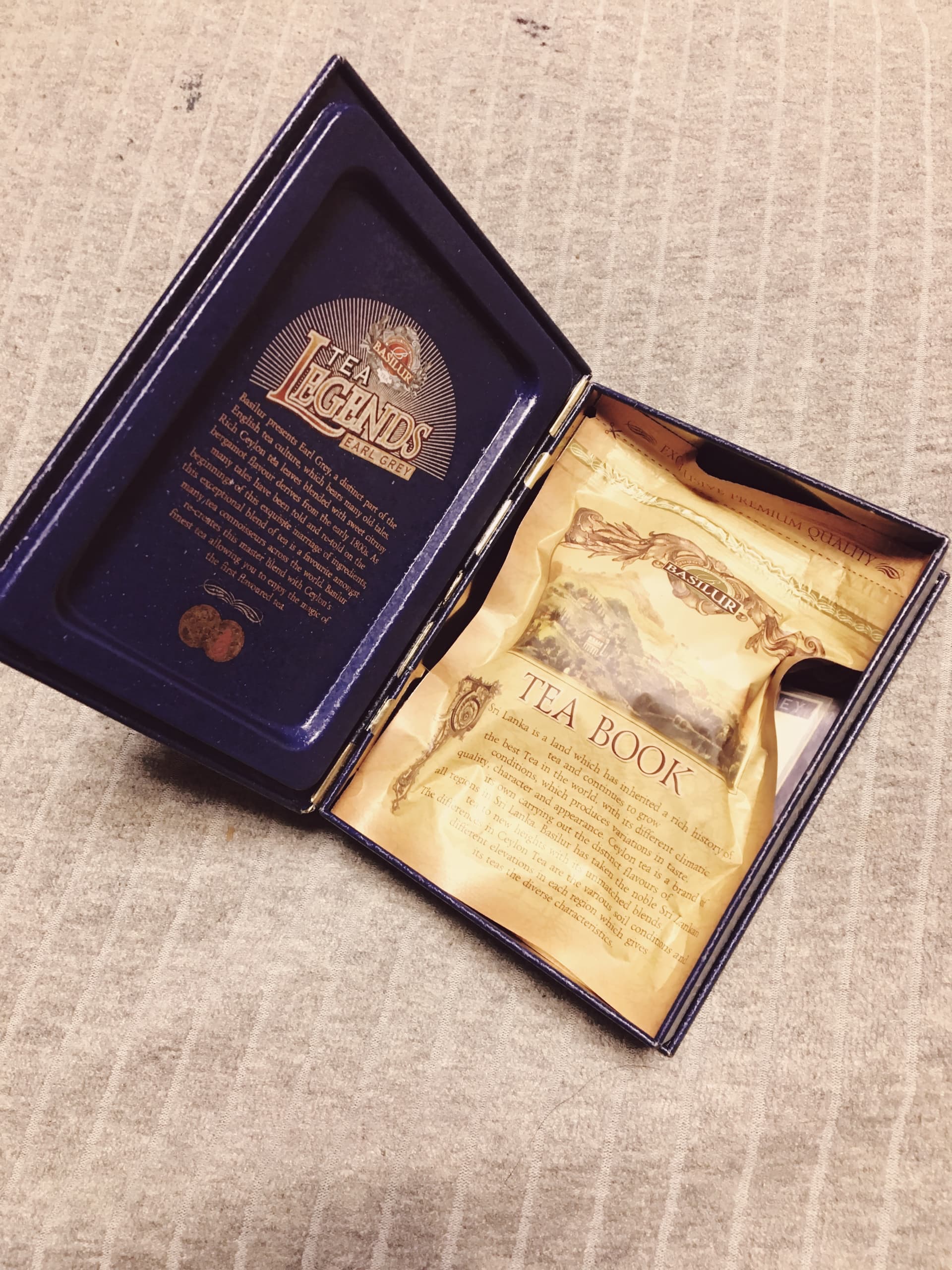 ブック型の紅茶。旅に出かけたくなるデザインしています。こういうさ、異国情緒溢れるここにはないファンタジーなデザイン大好物です。