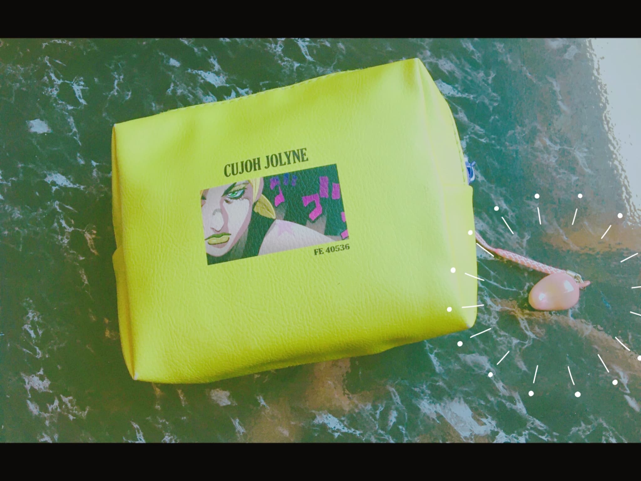 携帯煙草やら携帯用ウェットティッシュやらハンカチやらの、お出かけ用ポーチの徐倫につけてみました。シャラランランいい音。財布にはもう、名古屋の犬山城の鈴つけているので、この勾玉鈴はこっちです。