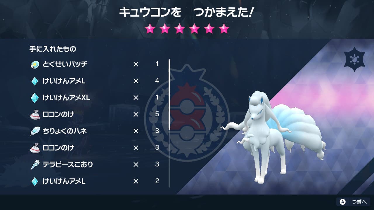その後星6のアローラキュウコンと巡り会い、2人で挑み無事ゲット。