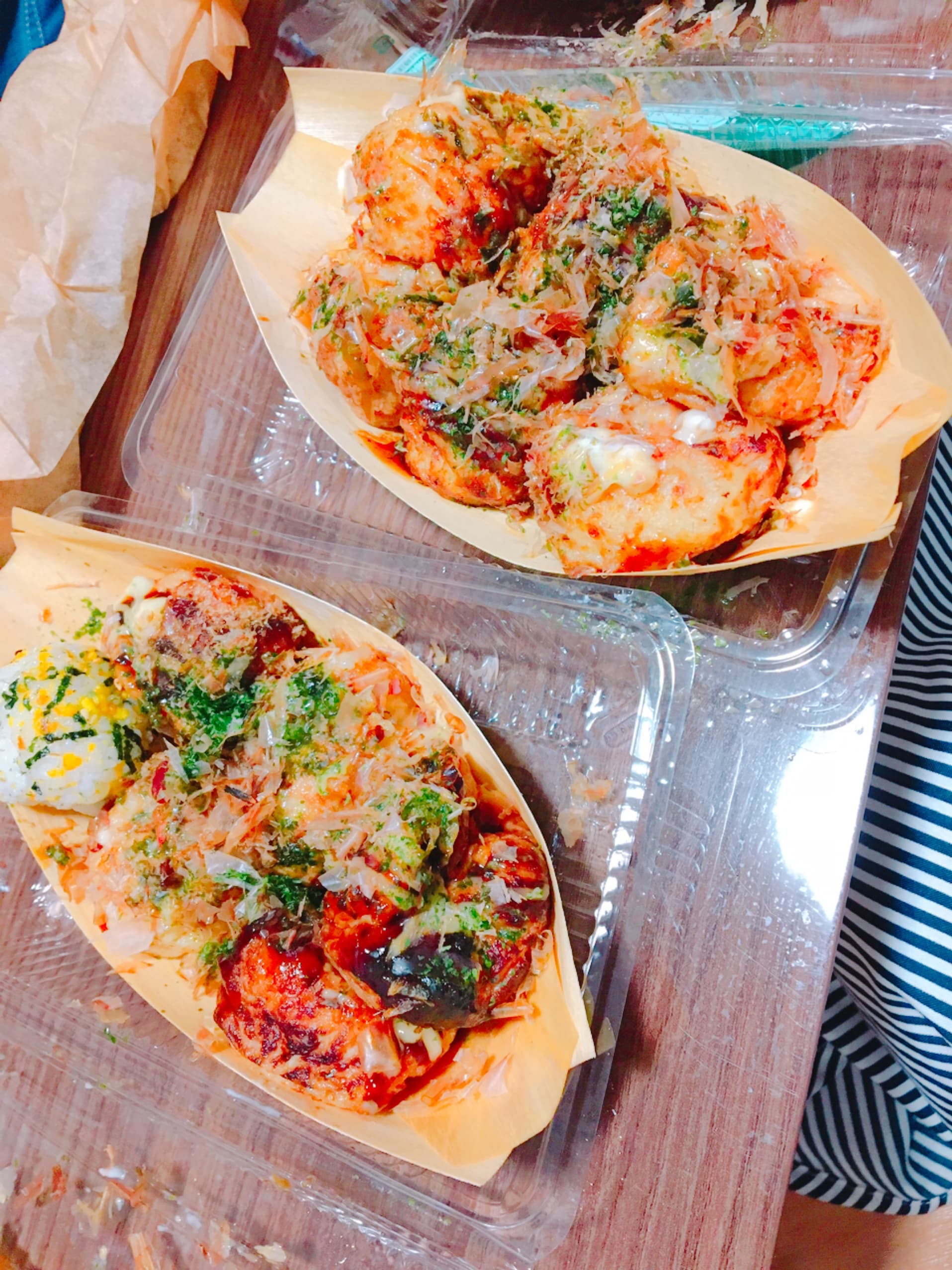 一つ一つでけぇたこやきで、ふわふわトロトロ。さつまいももあっまぁ~くてねっとりでおいっしかった!!