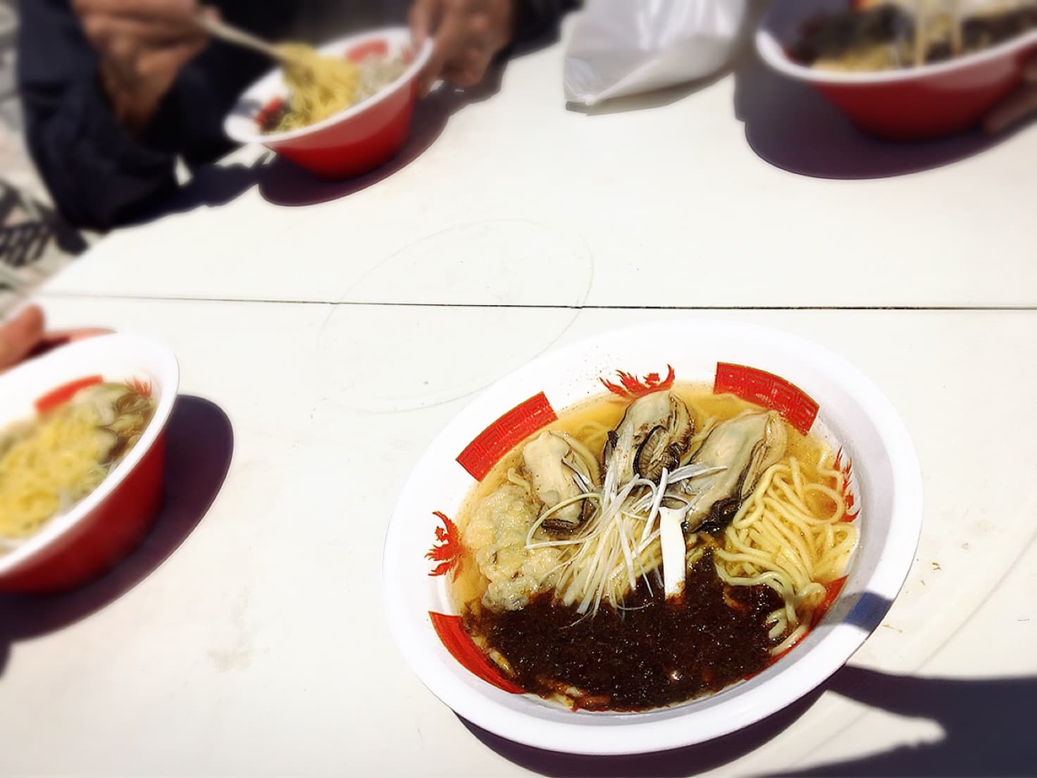 そこでフェス開催していたから、漁港の街なのでラーメン食ってきた。牡蠣と岩のりの塩ラーメン。