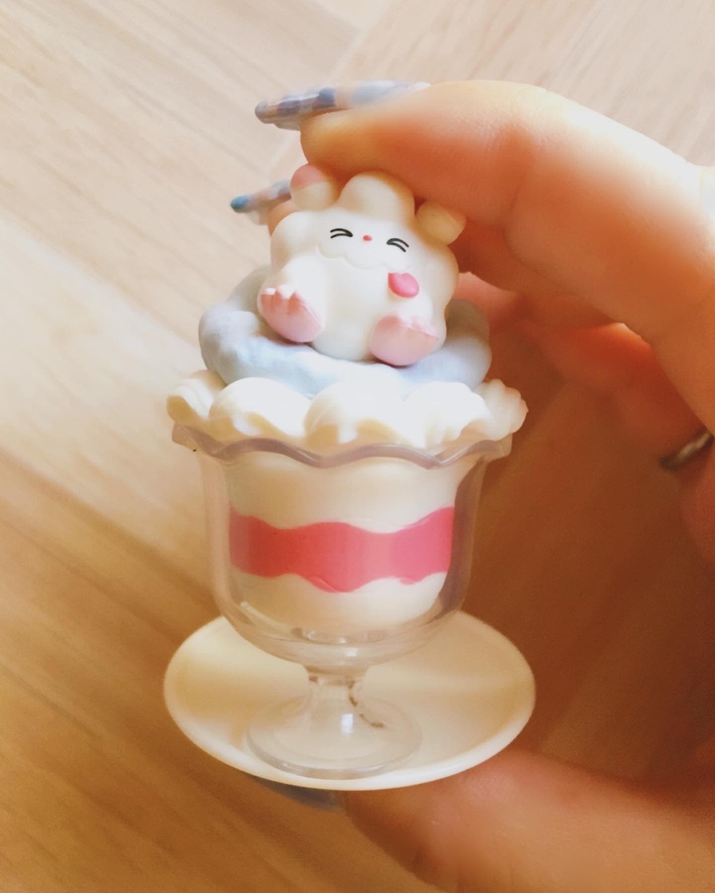 ペロッパフのパフェなフィギュアも入っていました。かっわいいー!!飾り用の棚に置いて、ニヤニヤしようと思います。ペロッパフ可愛いぺろぺろ。