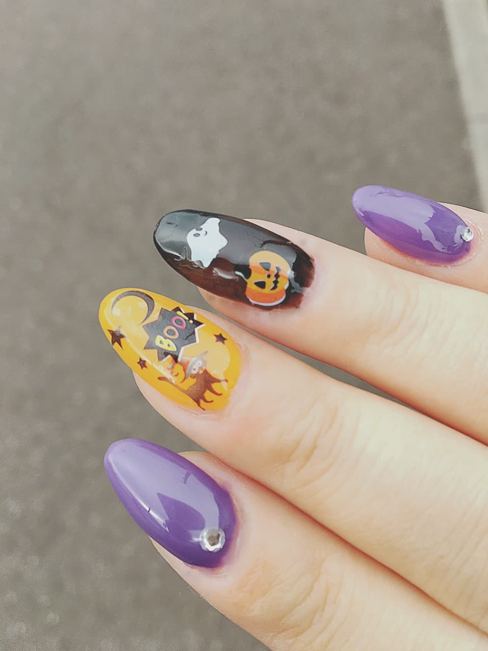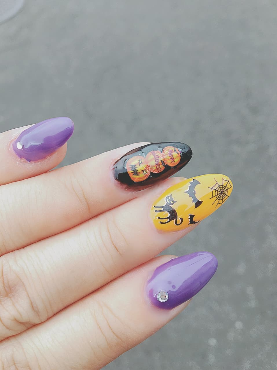 今の私の爪、ハロウィンネイル\('ω')/