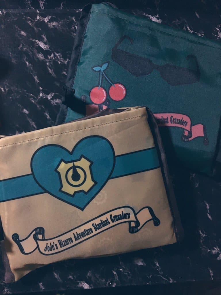 承太郎デザインの青は無かったけど、花京院ξ('ω' )とDIOのエコバッグはゲットできたからよしとします。あとシュシュも。