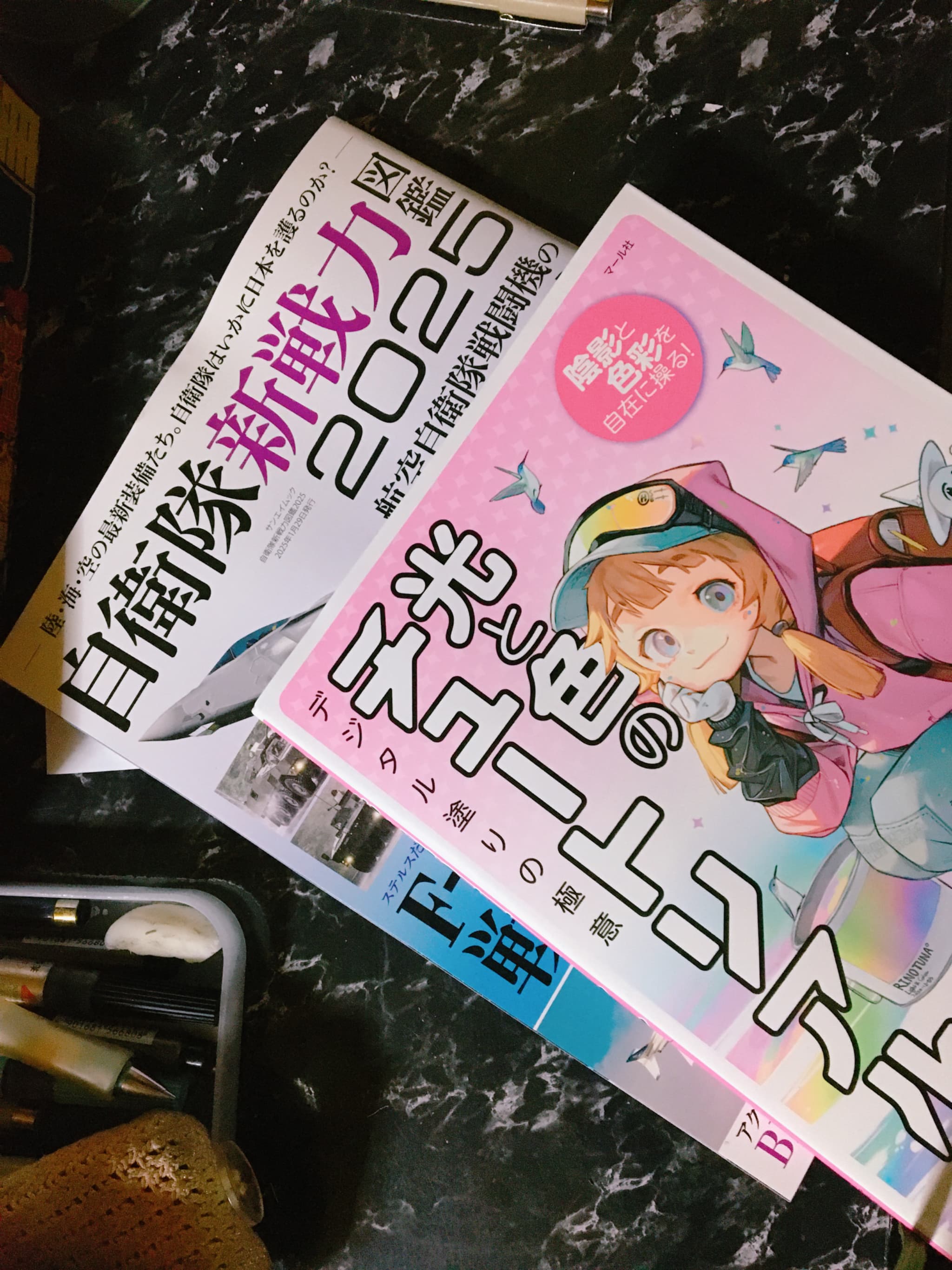 着色の時参考になる本と、自衛隊の乗り物図鑑\('ω')/