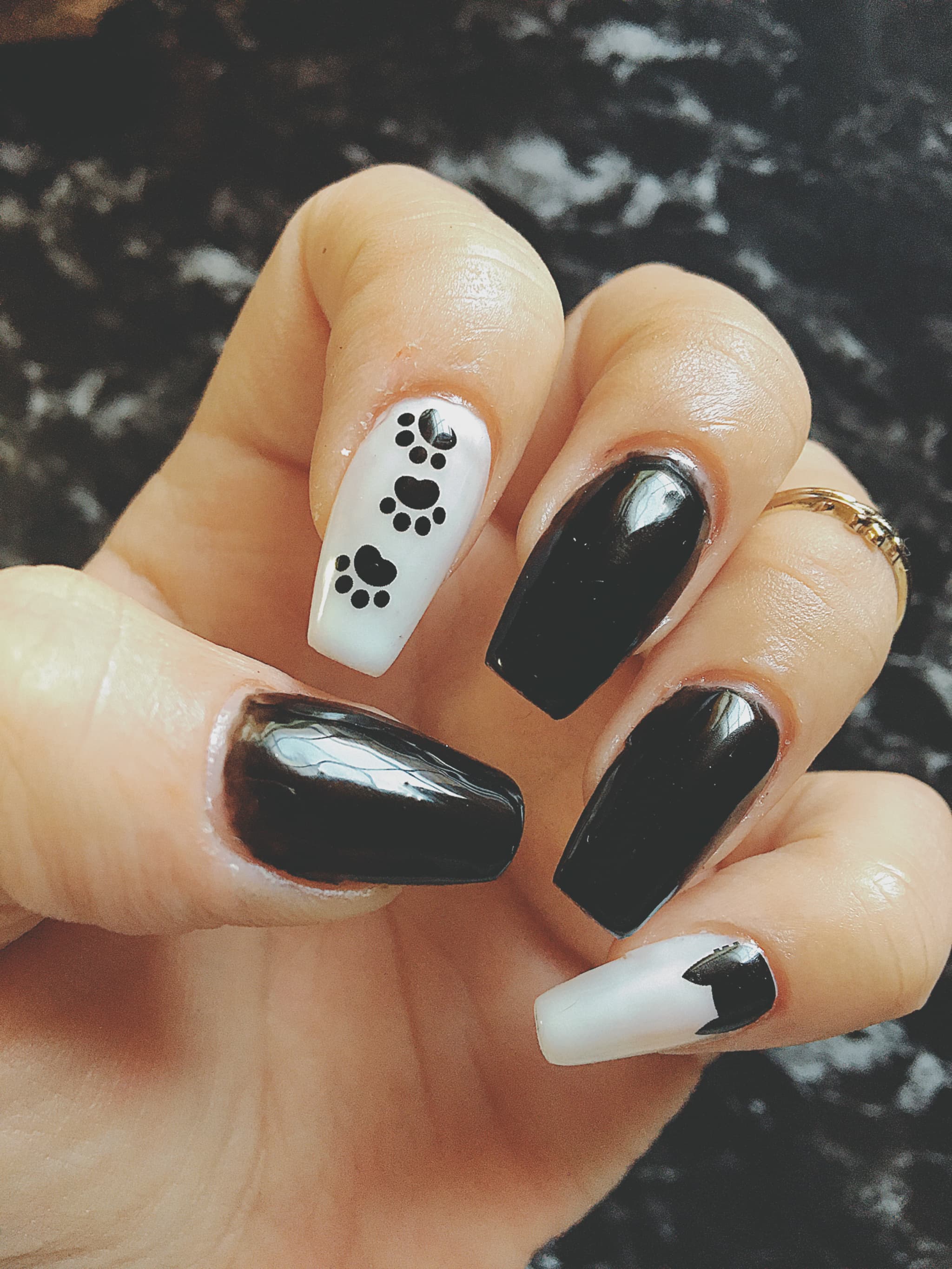 ネイルしました。そろそろ黒ネイル欲が高まっておりましたので、白黒ネイルに。