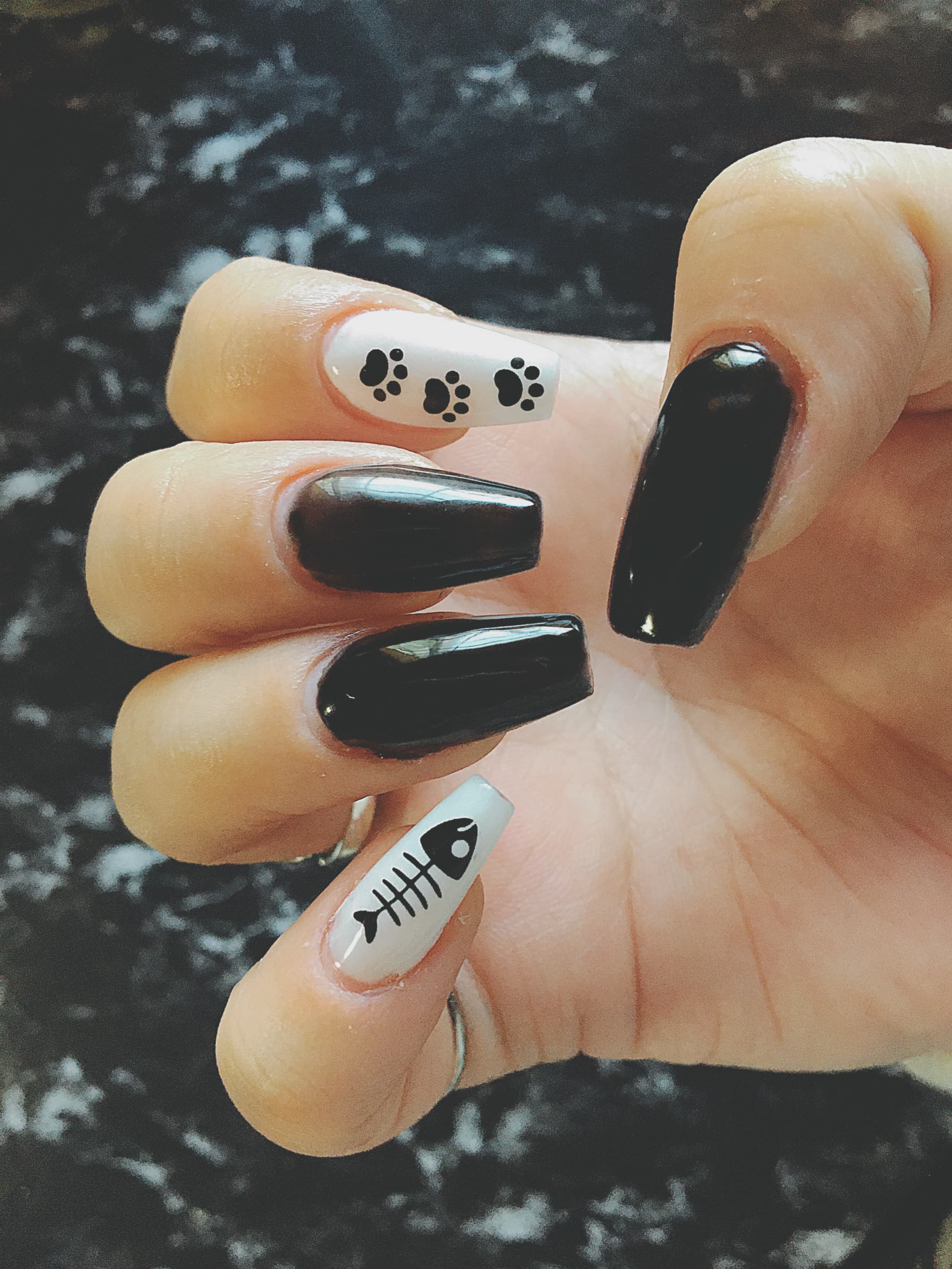 黒背景でも貼れるような白い影の猫のネイルシールとかも探しておけばよかったです。けどこれくらいでいいかな。