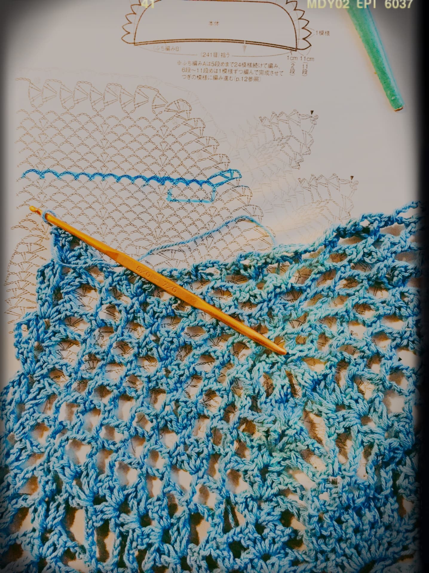 3分の1は進んだと思う。まだ周囲を囲むようにパイナップル模様編む必要があるんだが。とりま本体はもう少しで完成できそうです。