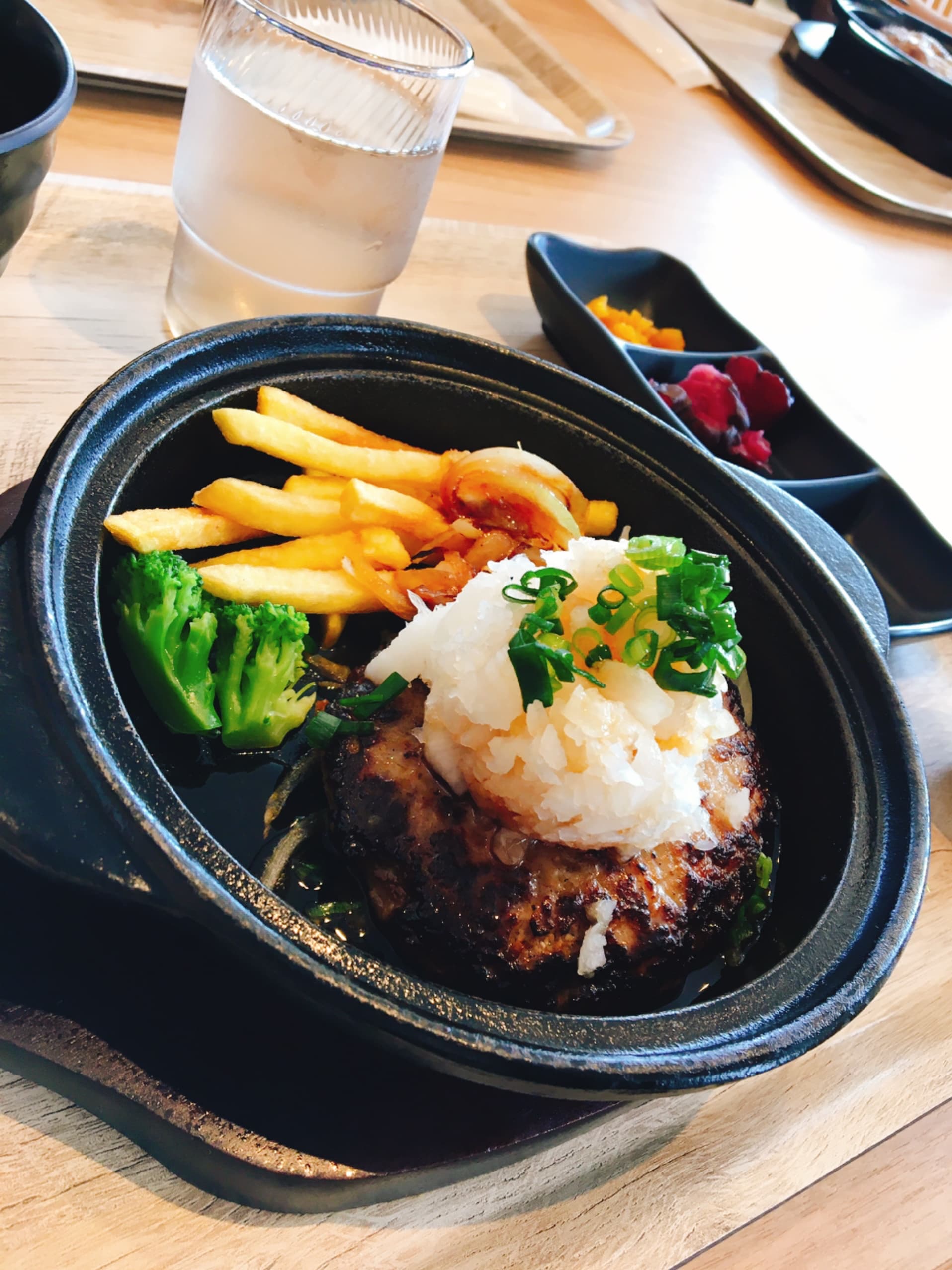 お昼はハンバーグ(おろしポン酢バーグ)。