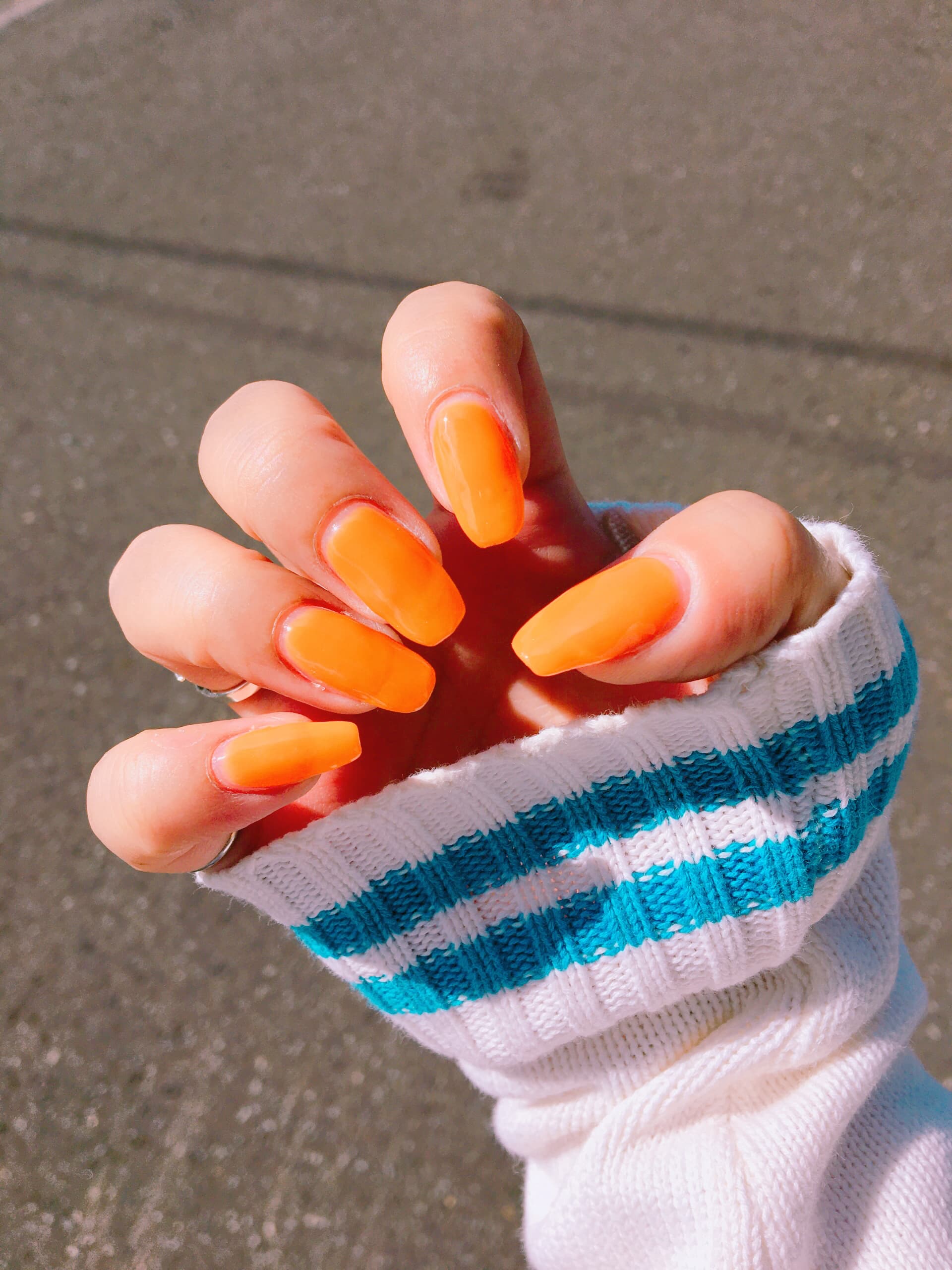 ネイルしました。ビタミンカラーにしたくて、セリアの「キャロットオレンジ」をワンカラー。