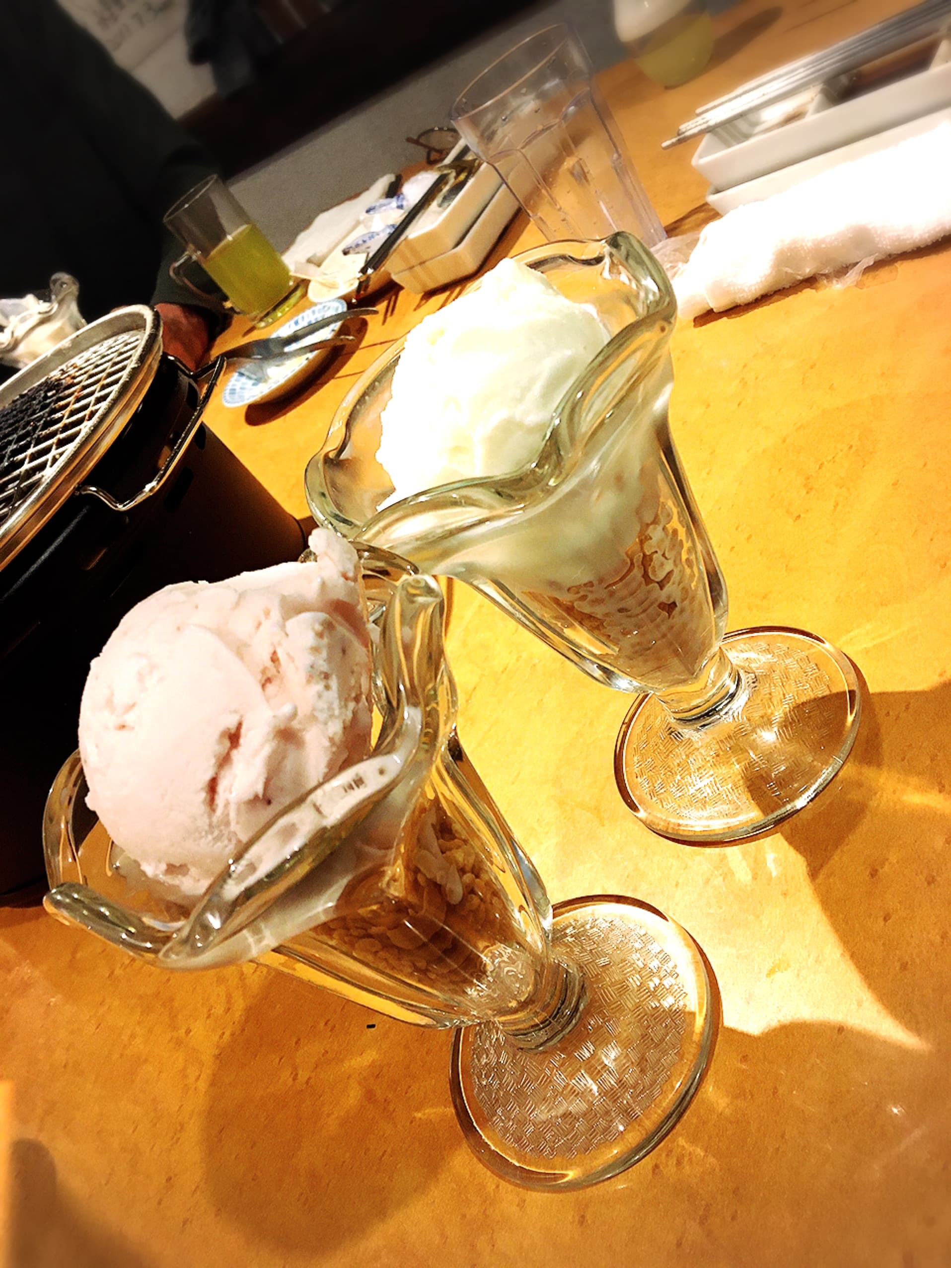 私が頼んだのがいちご、ちびやちびのお母様が頼んだのがミルク。しつこくなくて食べやすいアイスでした。大満足です。